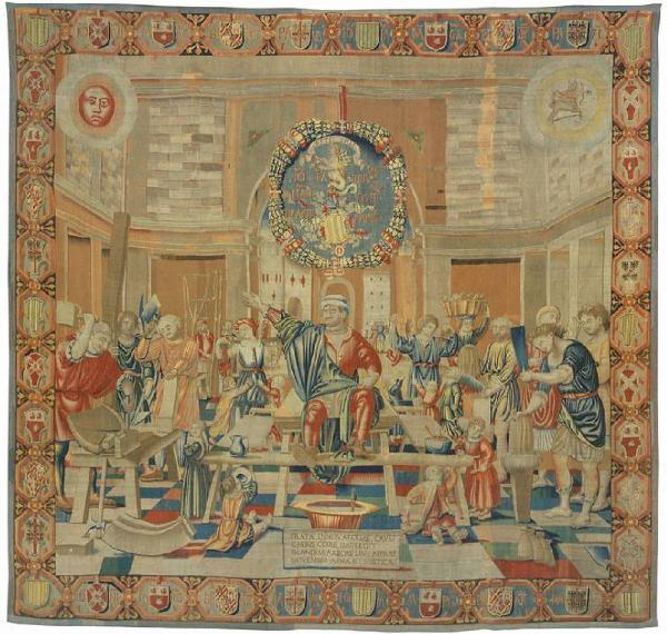 - NOTIZIE STORICO CRITICHE La scelta operata dal Bramantino per questo mese evidenzia il deciso scarto dalla tradizione italiana dei calendari figurati, che nel XV secolo attribuivano a questo periodo la battitura delle ghiande (Nord Italia) e la raccolta dell olive (Italia Centrale). In questo arazzo è presente più che altrove il legame di Bramantino con la miniatura tardo gotica lombarda: i lavori non derivano da attività campestri, bensì da quelle dell'artigianato locale. Non si conosco altri cicli dei Mesi in cui compare la lavorazione del legno, eccezion fatta per la xilografia di Novembre di un ufficio a stampa veneziano, l'Officium Beatae Mariae ad usum Romanum noviter impressum. Per quanto riguarda, invece, la lavorazione del lino, essa fa per la prima volta la sua comparsa in questo ciclo, forse proprio perché trattasi di arazzi: il lino poteva sostituire la lana nella tessitura (Forti Grazzini). L'architettura della sala ricorda quella presente nel tondo a monocromo dell' "Argo" di Bramantino. La postura della personificazione di Novembre ricorda quella adottata sempre da Bramantino nel San Giovanni a Patmos della Collezione Borromeo all'Isola Bella. Elementi pressoché identici sono poi ravvisabili anche in opere dello Pseudo-Bramantino (Pietro Ispano).\nNovembre fu tessuto nel corso del 1509: il 3 febbraio Benedetto da Milano riceve pagamenti dal Trivulzio per la lavorazione di questo arazzo.