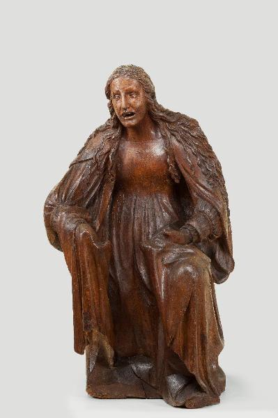 Scultura ricavata in un unico tronco di legno raffigurante la Maddalena, priva di policromia. La figura è colta nell'espressione di dolore, inginocchiata e protesa in avanti, con i capelli sciolti, la bocca aperta in un grido, tiene le mani aperte "a tenaglia" all'altezza del grembo a sostegno verosimilmente della testa del Cristo (perduto o non rintracciato) e nel gesto apre il mantello.