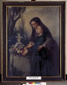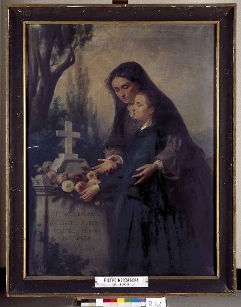 Allegoria in memoria di Pietro Merzagora. Due donne portano fiori su una tomba