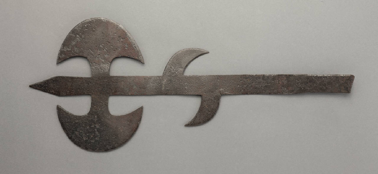 - NOTIZIE STORICO CRITICHE Fu raccolta da Giuseppe Vigoni e donata nel 1935 al Comune di Milano.\nLa parte in ferro è ciò che rimane dell'arma, un tempo completa della parte in legno, probabilmente bruciata negli incendi che scoppiarono in alcune sale del Castello Sforzesco (dove l'opera era conservata) durante i bombardamenti della Seconda guerra mondiale.