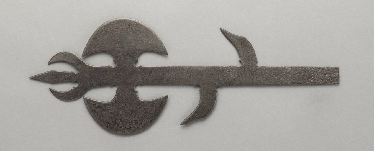 - NOTIZIE STORICO CRITICHE Fu raccolta da Giuseppe Vigoni e donata nel 1935 al Comune di Milano.\nLa parte in ferro è ciò che rimane dell'arma, un tempo completa della parte in legno, probabilmente bruciata negli incendi che scoppiarono in alcune sale del Castello Sforzesco (dove l'opera era conservata) durante i bombardamenti della Seconda guerra mondiale.