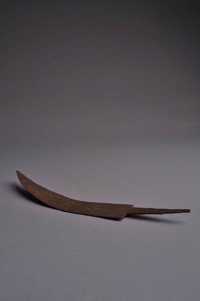 Lama di coltello curvo con filo al convesso. Dorso e filo convergono a punta acuta.