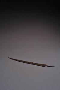 Breve codolo piatto a spuntone, lama fine, a un filo, leggermente concavo nel forte, poi convesso nel medio e debole e terminante a punta aguzza all'insù. Il dorso, piatto, prosegue dritto fino al debole dove si curva leggermente seguendo la direzione del filo. Dal tallone al medio un decoro di agemina d'argento a tratti sinuosi e segmenti.