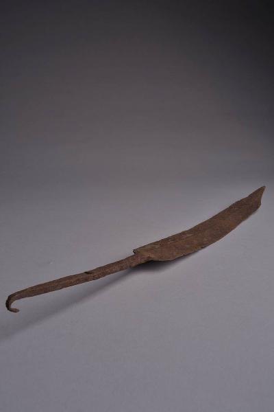Lama di daga o grosso coltello, sottile, crestata al centro con i due fili che scorrono divergendo solo leggermente fino a metà del debole per poi convergere a circa metà di questo a formare una punta triangolare. Lungo e fine codolo centrale.