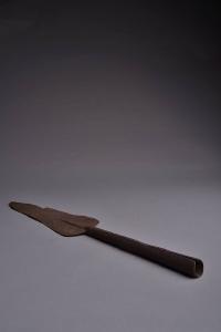 Ferro di lancia con gorbia tubolare aperta che prosegue nella nervatura della base della cuspide a due fili concavi per quasi tutta la loro lunghezza e concavi nella porzione di punta finale.