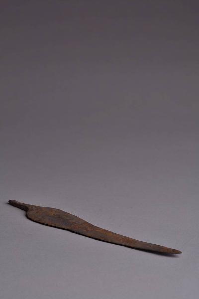 Lama crestata di forma triangolare a due fili convergenti con breve codolo centrale a spuntone.