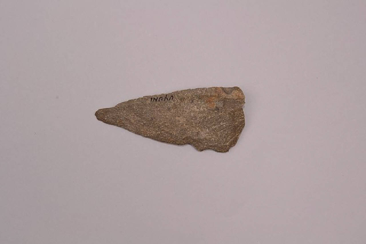 Scheggia in andesite basaltica proveniente da Uyuni. Sulla faccia dorsale sono visibili i negativi dei distacchi precedenti. Non presenta tracce di ritocco intenzionale. Tallone liscio.