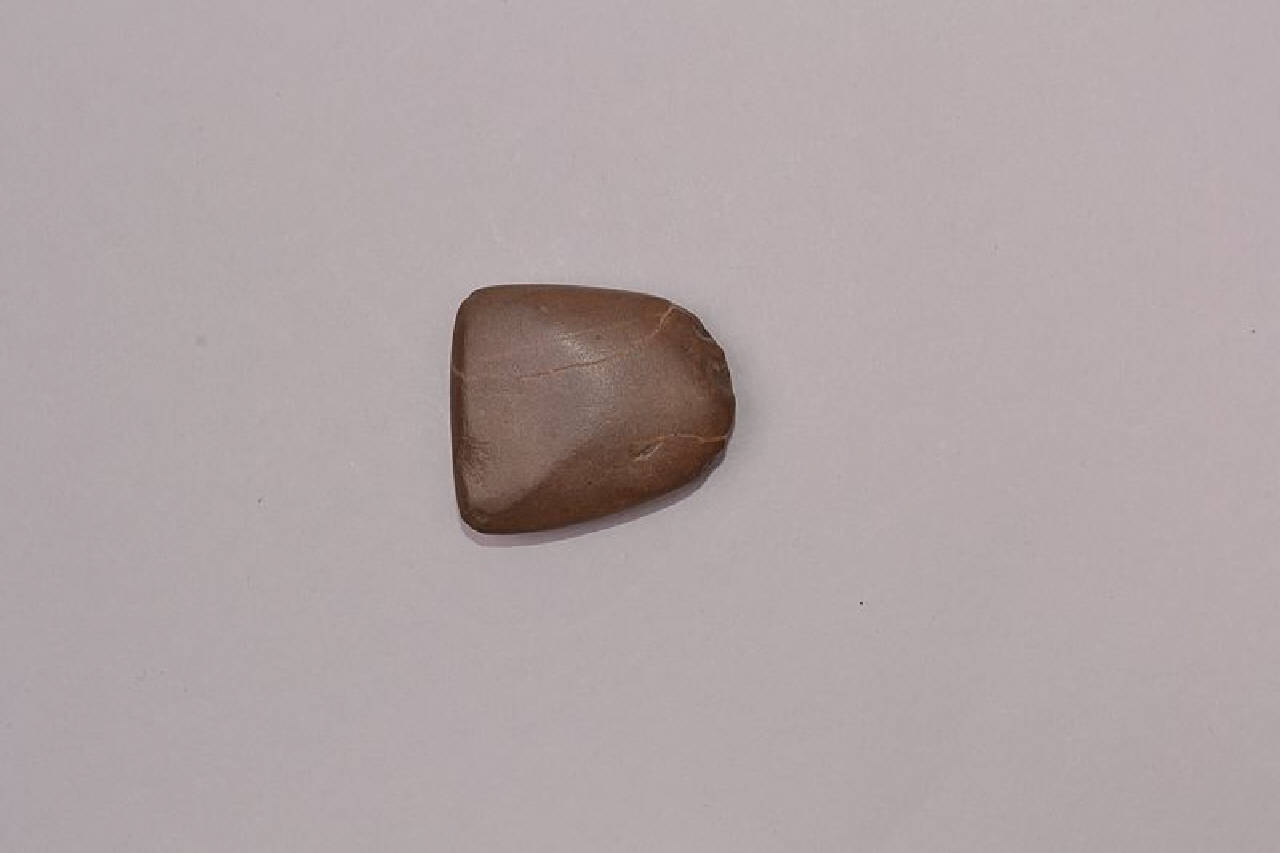 Ascia di piccole dimensioni in granito trattato termicamente o riolite. Forma trapezoidale, tallone arrotondato, tagliente rettilineo, sezione piano-convessa. Presenta depressioni sulla faccia posteriore non eliminate in fase di levigatura.