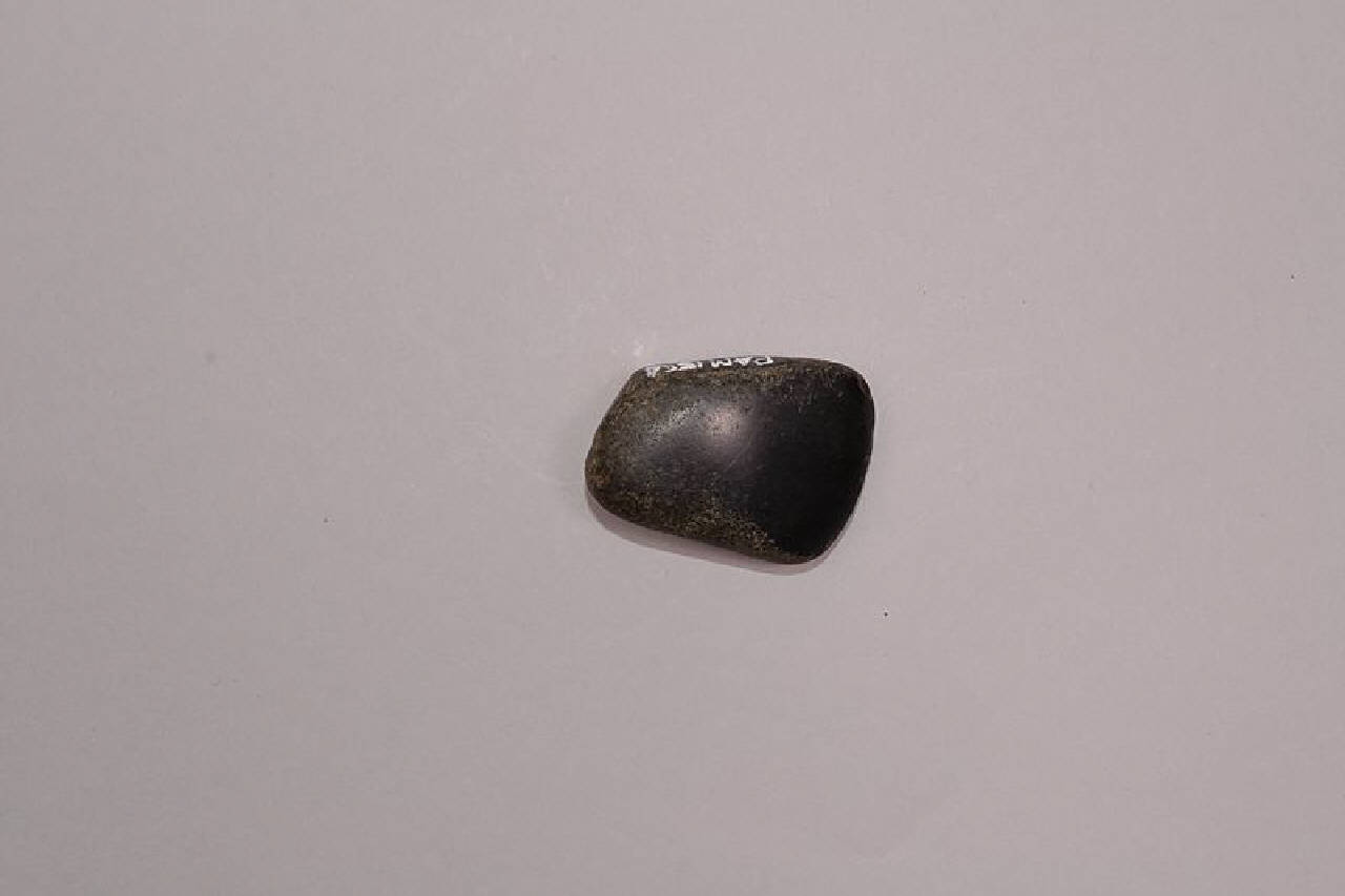 Ascia in basalto di piccole dimensioni proveniente da area Maya. Forma trapezoidale, tallone irregolare arrotondato, tagliente arcuato inclinato, sezione piano-convessa.