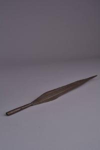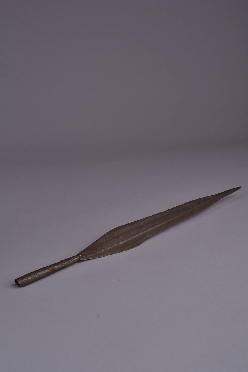 Ferro di zagaglia o giavellotto con breve gorbia aperta e cuspide di forma fine e allungata con nervatura centrale appiattita; leggera strozzatura in corrispondenza del debole.