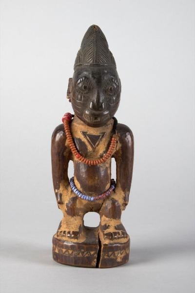 - NOTIZIE STORICO CRITICHE Le statuette ibeji rappresentano i gemelli. Presso gli Yoruba in epoca precoloniale la nascita di gemelli era considerata un evento nefasto, un'intrusione dell'animalità nella sfera della riproduzione umana; per questo i gemelli venivano abbandonati riconsegnadoli alla boscaglia da cui si riteneva provenissero. In epoca più recente il significato si è capovolto facendone un segno benaugurante e dando vita a un culto dei gemelli. In caso di morte di uno o di entrambi i gemelli, la madre fa scolpire queste statuette di cui si prende cura, lavandole, vestendole e nutrendole, in quanto depositarie dello spirito dei figli defunti. Alla sua morte verranno trasmesse a una delle figlie. I gemelli conservano comunque un lato oscuro: il culto che si rivolge loro serve a placarne lo spirito.