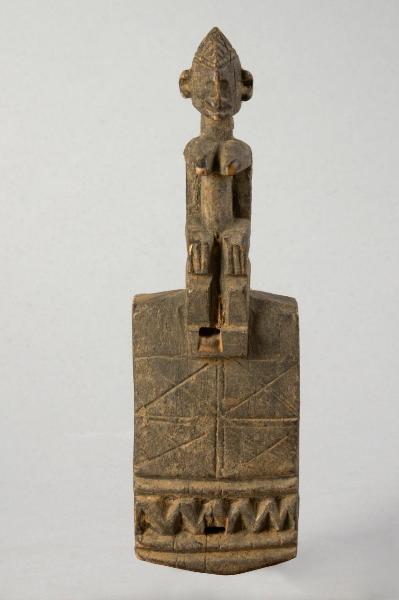 - NOTIZIE STORICO CRITICHE Le serrature chiudono le porte di abitazioni, granai e pollai e, più raramente, altari. La scultura figurativa che sormonta la serratura ha un significato specifico in rapporto alla persona per la quale è stata realizzata; gli intagli che compaiono nella parte inferiore sono invece legati alla sua posizione sociale. Secondo l'antropologa Denise Paulme oltre al significato simbolico e ai vincoli funzionali occorre tener presente anche la creatività individuale dell'artista e quindi la presenza di elementi imprevedibili non vincolati socialmente e tecnicamente.\nLe figure antropomorfe e zoomorfe possono riferirsi ai personaggi della mitologia dogon (in particolare i geni nommo, progenitori dell'umanità, i quali \n hanno sembianze antropomorfe nella parte superiore del corpo e di serpente in quella inferiore).\nLa linea a zig zag che compare nella parte inferiore evoca il movimento dei raggi solari e della pioggia.