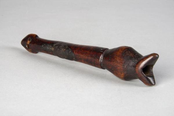 FISCHIETTO di forma fallica con fori laterali per la modulazione del suono e un foro al centro.