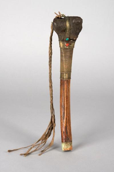 Kangling. Strumento musicale a fiato (tromba), ricavato da un femore umano (talvolta da una tibia o un semplice legno), sormontato da decorazioni in metallo e impreziosito da gemme; accompagnato da cordicelle intrecciate.\nProduce un suono rauco che si diffonde mediante due fori praticati nei condili.