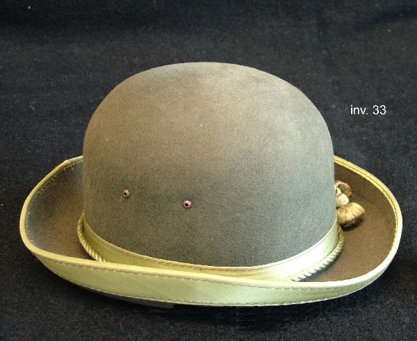 Cappello con cordoni in seta e striscia in plastica di rinforzo nella parte interna.