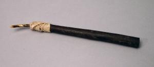 Bastoncino di legno cilindrico alla cui estremità è legato con fibra vegetale dente di roditore.