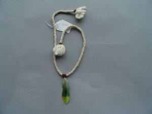 Collana realizzata con una corda di cotone ritorto. Il pendente è composto da una penna verde attaccata al cordoncino di cotone con cera naturale.