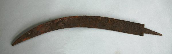 Lama di grosso coltello con filo al convesso. La lama curva in modo più accentuato fra il medio e il debole dove dorso e filo convergono a punta acuta.