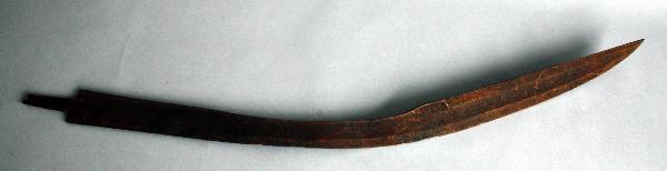 Lama di sciabola, filo e dorso scorrono dritti e paralleli nel forte, curvano fortemente nel debole, dove la distanza fra di essi si assottiglia formando al dorso una leggera concavità, e si espandono nel debole, dove il dorso prosegue dritto e il filo prosegue curvo al covesso, appesantendo la lama in punta. Il debole presenta al centro due grossi sgusci e un falso che ripercorre il dorso per tutta la porzione. Codolo centrale dal profilo rettangolare leggermente rastremato all'estremità e spezzato all'altezza del foro di giunzione del manico.