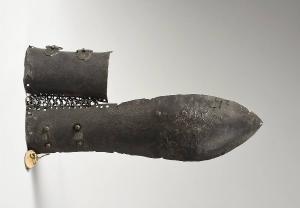 Di forma espansa in alto, terminante con foro; all'ultimo tratto del bracciale, una maglia. Scritta "Allah" in caratteri cufici. Marca di fabbrica: asta con mezzaluna.