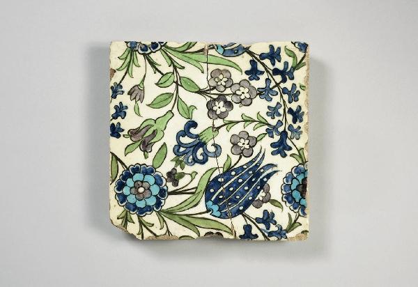 - NOTIZIE STORICO CRITICHE Per dimensioni e decorazione il presente manufatto è da mettere in relazione con la mattonella inventariata n. ISL 105 A con la quale ha fatto parte di un pannello fino al 2007 quando è stato diviso.\nSi tratta dell'imitazione della ceramica policroma di produzione anatolica risalente alla fine del XVI secolo (cfr. G. CURATOLA - M. SPALLANZANI 1981, p. 26, fig. 22).