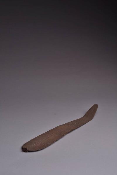 Ferro di lancia con cuspide a foglia con forte nervatura centrale terminante in una gorbia troncoconica aperta