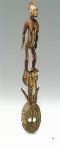 Maschera rappresentante nella parte sottostante (volto) un'antilope sormontata da una figura femminile.