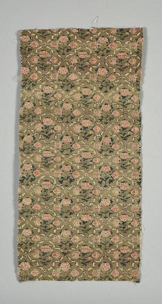 - NOTIZIE STORICO CRITICHE le caratteristiche tecniche e stilistiche del manufatto tessile in discussione, di fattura raffinata, inducono a un'attribuzione legata alla cultura artistica islamica espressa dalla Persia safavide tra il XVII e il XVII secolo. Il rametto fiorito sinuoso di rose, ornamento ricorrente in svariate arti applicate nell'arco temporale indicato è qui inserito nel contesto di un pattern a reticolo di ridotte dimensioni che fa pensare a frammenti provenienti da una fusciacca ricomposti a posteriori nel reperto attuale. La composizione usuale di questi accessori tipicamente orientali prevedeva sovente, accanto alle consuete bordure in cui il disegno restava in evidenza ad oggetto avvolto, un campo centrale caratterizzato da da pattern barrati o a piccole maglie, come si nota nel campione del museo milanese. Alcune referenze in collezioni estere sostengono l'ipotesi critica appena esposta: basti citare qualche esemplare di cintura in collezioni polacche (ad esempio il Museo di Cracovia, cfr. B. Biedronska Slota, 2011, pp. 176 e ss.), una fusciacca al Cleveland Museum (L. Mackie, 2015, p. 388, 9.50) e, per finire, un frammento appartenuto a Mariano Fortuny ora nelle collezioni civiche di Venezia, molto simile al reperto del MUDEC anche per le dimensioni del repeat (I tessili Fortuny, 2008, p. 33, n. 10)