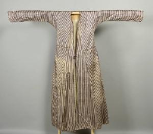 - NOTIZIE STORICO CRITICHE l'abito rientra nella tipologia generale dei caftani che l'enciclopedia Treccani definisce: "veste lunga, maschile, che si usa nei paesi musulmani: di stoffa colorata spesso a righe, è aperto sul davanti per intero, ha maniche assai lunghe" (www.treccani.it, accesso del 22 maggio 2019). La generica forma a T peculiare di questo abito, nell'ambito della lunga e geograficamente estesa storia islamica ha conosciuto diverse coniugazioni. Una delle fonti principali per la conoscenza del costume extra-europeo sono gli studi dell'artista e etnografo Max Tilke che rappresentano un classico storiografico e sono stati tradotti in più lingue. La comparazione con le tavole illustrate e le relative didascalie di Fogge di costumi e di vestiario (M. Tilke, Roma [1970], p. 16 e tav. 20) corroborano l'ipotesi che assegna la confezione del caftano nelle collezioni del MUDEC all'Egitto, nel XIX, sotto il dominio turco,. L'attribuzione è compatibile con la provenienza dell'oggetto dal Pompeo Mariani (1857-1927). L'artista può essere annoverato tra i pittori cosiddetti orientalisti che sentono il fascino del Vicino Oriente; nell'Ottocento tra i paesi che sono più in voga e diventano meta di viaggi ispiratori vi è proprio l'Egitto, dove lo stesso Mariani si recherà nel 1880 ricevendone suggestioni tangibili nel suo debutto all'Esposizione nazionale di Belle Arti di Milano dell'anno successivo. Come scrive Silvia Vacca Pompeo Mariani rientrò dall'Egitto "con diversi oggetti che rappresentarono l'inizio di una ricca collezioni di manufatti esotici, negli anni arricchita" (S. Vacca, 2015 p. 65, 67). Il caftano in discussione non fu l'unico ad entrare nelle raccolte dei musei civici di Milano; esso rientra in un gruppo di vesti simili rubricate ai nn. di inventario: SEA 133, 135 e 136.