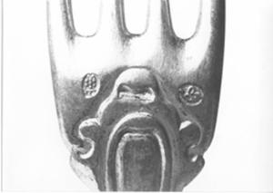 Servizio costituito da una zuppiera con coperchio e sottopiatto, due bottigliette con coperchio, tre posate di metallo dorate
