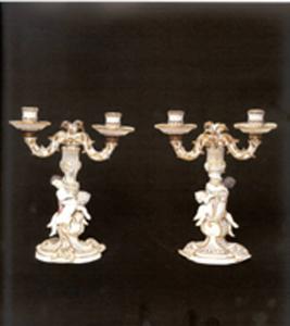 - NOTIZIE STORICO CRITICHE Il modello, con sostegno per una sola candela, fu ideato da Kaendler e da Johann Friedrich Eberlein (1696-1749) fra il 1737 e il 1741 per il servizio da tavola commissionato alla manifattura dal Conte Bruhl, Primo Ministro di Augusto III, in occasione del proprio matrimonio. I doppieri sono elaborazioni successive al 1741, anno in cui fu portata a termine la lavorazione del suddetto servizio.
