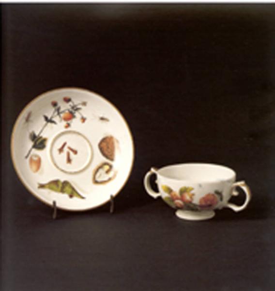 - NOTIZIE STORICO CRITICHE Questo tipo di decoro naturalistico si diffonde intorno alla metà degli anni quaranta. Il realismo delle immagini è accresciuto dall'effetto "trompe d'oeil" delle ombre proiettate dagli oggetti sul fondo bianco della porcellana (decoro " Schattenmalerei)