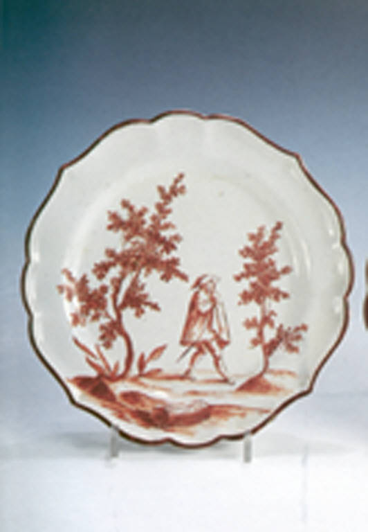 - NOTIZIE STORICO CRITICHE Questo pezzo è un esemplare di un assortimento abbastanza raro "a paesini e figure" dipinte in monocromia rosso-ferro. Seppure non siano citati nell'inventario della manifattura, non possono sorgere dubbi circa la loro autenticità: data innanzitutto la coerenza materica e stilistica con i prodotti dell'Ospedaletto di Sant'Ambrogio.
