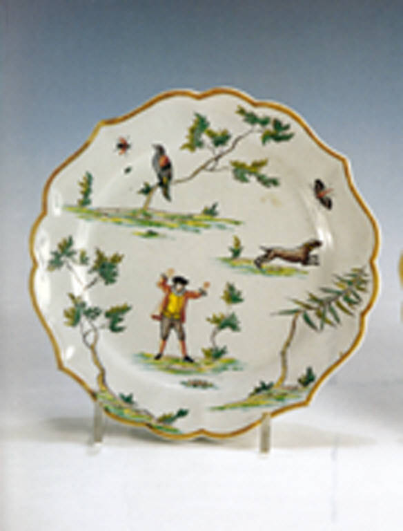 - NOTIZIE STORICO CRITICHE Il pezzo appartiene ad una evoluzione stilistica del "decoro a paesini e figure" dove le zolle si moltiplicano riducendosi notevolmente di dimensioni per lasciare respiro al biancore dello smalto. Sui piani secondari compaiono animali. Gli alberelli si assottigliano e ai faggetti fanno spesso compagnia pini molto stilizzati, all'orientale. Gli insetti in volo diventano farfalle molto più curate del solito nel disegno e nella cromia. In questa serie troviamo talvolta ai piedi delle figure un fiore stilizzato, posto a terra, scorciato. E' evidente che le incisioni sono sempre a disposizione di pittori dell'Ospedaletto che ne attingono copiosamente per le loro figure. Non tutte sono ancora state riconosciute dagli studiosi.