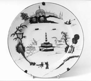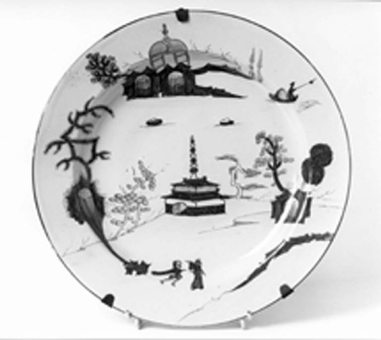 - NOTIZIE STORICO CRITICHE La definizione "al carabiniere" è un nomignolo sorto nel mondo antiquariale nel secolo scorso. Nasce dalla somiglianza tra il pennacchio della pagoda con quello che corona il copricapo della divisa dei carabinieri. La denominazione più corretta dovrebbe essere "alla pagoda cinese".\nIl motivo della pagoda è sicuramente il riflesso delle più semplici porcellane cinesi d'esportazioni in monocromia di cobalto chiamate "isola" o "isola e ponte" in cui la superficie è abitata da fiumi, isole, ponte, pagode, montagne, pini e salici.