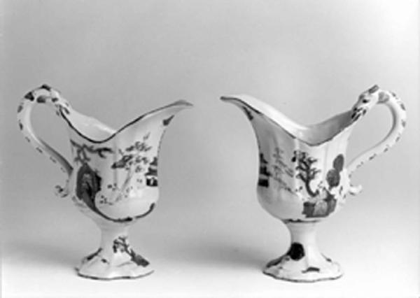 - NOTIZIE STORICO CRITICHE Ritroviamo la stessa identica forma decorata "a paesini e figure a comparto blu" marcato "Milano" in corsivo rosso: un vasto assortimento sfornato da Clerici. Ma probabilmente ambedue le manifatture milanesi producevano questi pezzi.\nLa denominazione "a carabiniere" è sorta nel mondo antiquarilae del secolo scorso. Nasce dalla somiglianza tra il pennacchio della pagoda e quello che corona il copricapo della divisa dell'Arma dei Carabinieri.\nLa denominazione più corretta dovrebbe essere "alla pagoda cinese".\nIl motivo "della pagoda" è sicuramente il riflesso delle più semplici porcellane cinesi d'esportazione in monocromia di cobalto chiamamte "isola" o "isola e ponte" in cui la superficie è abitata da fiumi , isole, ponti, pagode, montagne, pini e salici. Prodotta a Ching-te-chen fino al 1785 circa. Il motivo decorativo a padiglione o pagoda è tra i più comuni sulle porcellane ammassate sulle navi cargo delle Compagnie delle Indie.