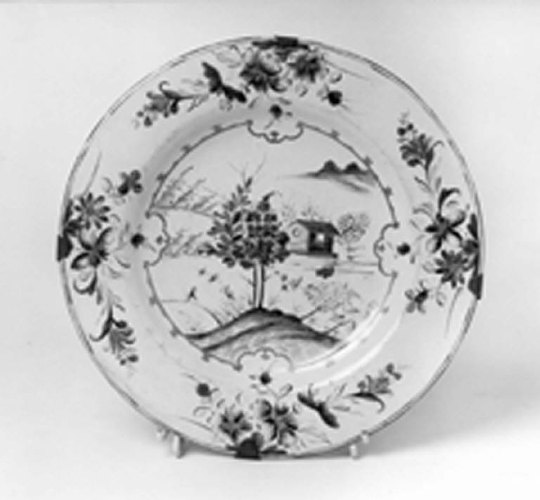 Piatto tondo dall'orlo liscio, rivestito con uno smalto spesso.