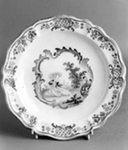 - NOTIZIE STORICO CRITICHE La manifattura torinese dei Rossetti ha da sempre un dialogo formale privilegiato con la Francia. Infatti riconosce nella manifattura Pentagone di Joseph II Fauchier di Marsiglia (1751-1789) la fonte per rimodernare il proprio linguaggio pittorico, pur non possedendo la tavolozza a piccolo fuoco. Ecco riprendere l'impianto decorativo dai motivi "rocaille figuré" marsigliesi: rocailles, cornici a graticcio, ciuffi fioriti inanellati a ritmo incalzante incorniciano scene animate; Se è molto simile il carattere decorativo dell'insieme, è più corsiva la stesura degli italiani, soprattutto nelle scene figurate. Questa produzione incontrò straordinario successo presso la clientela della fabbrica tanto da diventare a sua volta oggetto d'imitazione dipinti dalle manifatture napoletane.