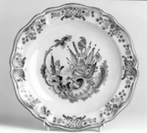 - NOTIZIE STORICO CRITICHE Tipico della produzione torinese è questo repertorio di putti con elmi e trofei d'armi classiche che è l'eredità delle figurette che abitavano le strutture decorative "alla Berain" in monocromia di cobalto prodotti con successo da Giorgio Giacinto Rossetti negli anni trenta del secolo.