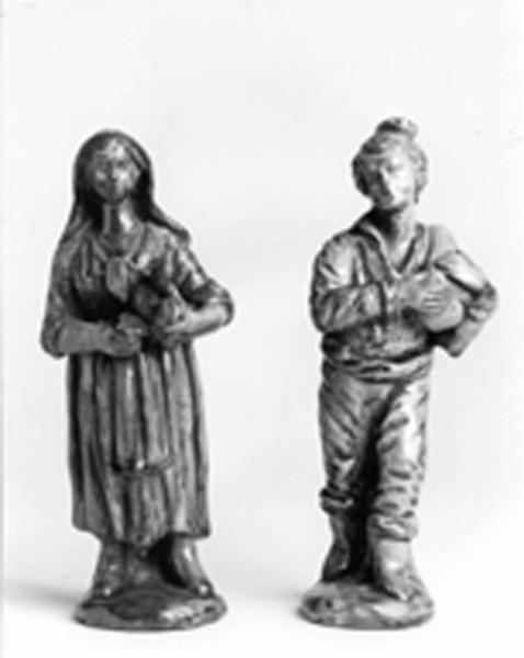 - NOTIZIE STORICO CRITICHE Sembra essere una figura da presepe. La piccola scultura conosce poche aree attributive sicure, ancor più, quando il prodotto ha un accento popolare sostenuto dall'uso dello smalto verde. L'attribuzione a Pavia sembra strumentale non essendo fondata su possibili confronti di sicura provenienza, mentre sul mercato antiquario pezzi simili sono stati attribuiti alla produzione del centro calabrese di Squillace.