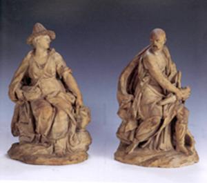 Scultura in terracotta color camoscio a grana molto fine, cava, raffigurante una figura femminile tartara.