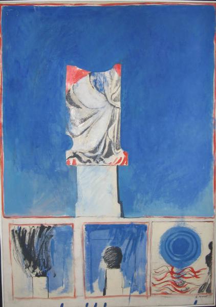 Opera divisa in due fasce. La zona superiore occupa tutta la larghezza dell'opera, quella inferiore è divisa in tre zone.