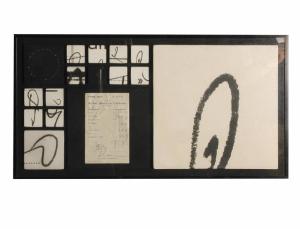 Griglia nera comprendente sedici aperture quadrate di quattro diverse dimensioni, all'interno di una di queste c'è il conto del buffet della Stazione Centrale di Milano cui si riferisce il titolo, negli altri tracce nere su fondo bianco.