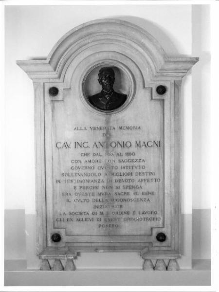 • NOTIZIE STORICO CRITICHE Ricorda uno dei vari direttori dell'orfanotrofio maschile e fa parte della serie di lapidi commemorative presenti nell'istituto.