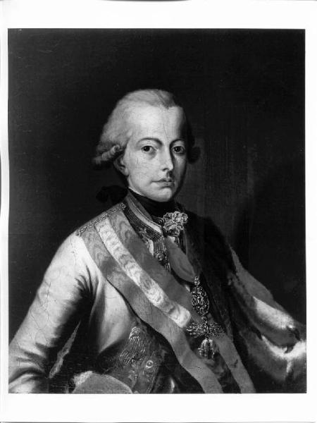 - NOTIZIE STORICO CRITICHE Giuseppe II d'Asburgo-Lorena (1741-1790), in co-reggenza con la madre dal 1756, quando Maria Teresa morì, nel 1789, divenne unico sovrano. Proseguì per un decennio i tentativi di riformare lo stato austriaco, con misure anche radicali (in primo luogo nella politica ecclesiastica), secondo i principi del "dispotismo illuminato". Giuseppe II si recò a visitare minuziosamente la Lombardia nel 1769. Le sue riforme provocarono resistenze da parte della nobiltà, del clero e anche della popolazione. Fu lui ad abolire nelle campagne la servitù della gleba, ma non riuscì a realizzare il piano di sostituzione dei tributi feudali con un'imposta fondiaria unica per tutti i proprietari terrieri.\nL'imperatore Giuseppe II fu tra i principali benefattori del Luogo Pio della Stella cui aggregò numerosi enti minori: Santa Pelagia, Santa Maria del Rosario, Santa Elisabetta delle orfane di Monza, Luogo Pio del Rifugio. \nLa data sul retro risulta posticcia, infatti, dati i termini biografici del ritratto (1741-1790), è più probabile che debba essere letta per 1757: sotto il sei infatti si distingue il numero sette e sotto il primo nove un cinque. Tale osservazione trova riscontro in una fotografia realizzata prima del restauro dalla quale si possono leggere le prime tre cifre, 175, seguite forse da un sette. Nell'anno 1757 Giuseppe II aveva sedici anni, quindi risulta molto vicino alle fattezze adolescenziali del ritratto. L'imperatore è stato ritratto in alta uniforme e decorato del Toson d'oro, secondo un'iconografia piuttosto frequente e convenzionale che si ritrova anche in un dipinto conservato al Museo del Risorgimento di Milano. L'opera non si distacca quindi dalle convenzionali immagini ufficiali della ritrattistica cortese.
