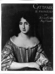 - NOTIZIE STORICO CRITICHE La nobildonna istituì, nel testamento del 1685, un legato annuo per il convento di S. Pietro Martire di Monza. Dopo la soppressione del Monastero il legato passò all'orfanotrofio maschile di S. Pietro in Gessate, nel 1777. Il ritratto risulta qualitativamente interessante nonostante il cattivo stato di conservazione e i pesanti ritocchi a cui è stato sottoposto. Di particolare interesse risultano la resa dell'incarnato, il panneggio ricco ed elaborato, in special modo quello delle maniche, oltre alla natura morta con fiori in basso a destra. L'opera sembrerebbe dunque il prodotto di un abile ritrattista che potrebbe riferirsi alla scuola milanese di fine Settecento.