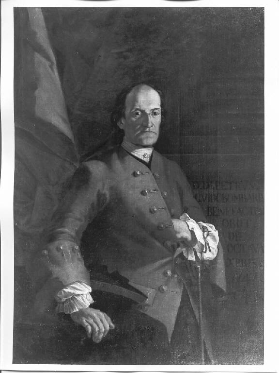 - NOTIZIE STORICO CRITICHE Con testamento datato 27 maggio 1744 Pietro Guidobombarda lasciò al Luogo Pio della Stella un cospicuo vitalizio. Stilisticamente accostabile agli ultimi anni di vita dell'effigiato, morto nel 1747, il dipinto risulta interessante e di qualità. Non si conosce l'autore dell'opera ma alcuni caratteri di non comune introspezione fanno pensare ai modi del Ceruti. Il personaggio è infatti ritratto con una particolare espressione volitiva che risulta amplificata dalla posizione nervosa della mano destra, caratteristiche queste che dimostrano una notevole attenzione alla definizione psicologica. Non avendo sufficienti indicazioni è possibile dunque pensare che il dipinto appartenga alla produzione più significativa di ambito milanese della metà del diciottesimo secolo.