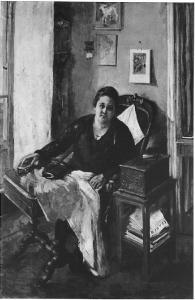 - NOTIZIE STORICO CRITICHE Il ritratto di Pia Prandoni, morta nel 1953 lasciando una cospicua somma al Luogo Pio, fu eseguito da Donato Frisia il quale eseguì contemporaneamente anche il ritratto del fratello, anch'esso facente parte della quadreria; è indubbio che in questo caso il livello artistico sia superiore. Risulta interessante la struttura compositiva della figura ritratta nel suo ambiente domestico. L'effetto del sotto in su è qui avvalorato dal contrasto cromatico fra lo scuro dell'abito e il candore della stoffa da lavoro. L'artista mostra una certa attenzione nella descrizione dei particolari caratteristica del realismo lombardo.