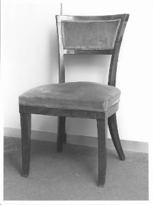 gambe incurvate verso l'esterno, sedile e schienale imbottiti