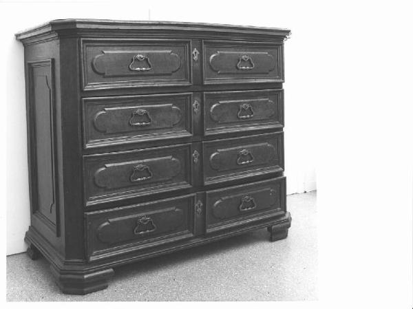piedi a mensola, serie di quattro cassetti, piano aggettante